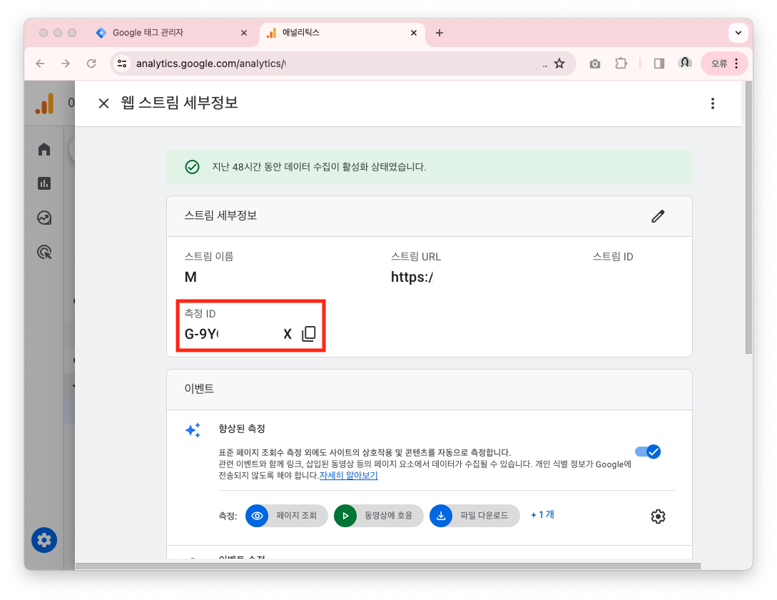 - 이 측정 ID는 초기세팅 말고도 새로운 이벤트를 정의할 때마다 명시해줘야 하는 정보이기도 하고,