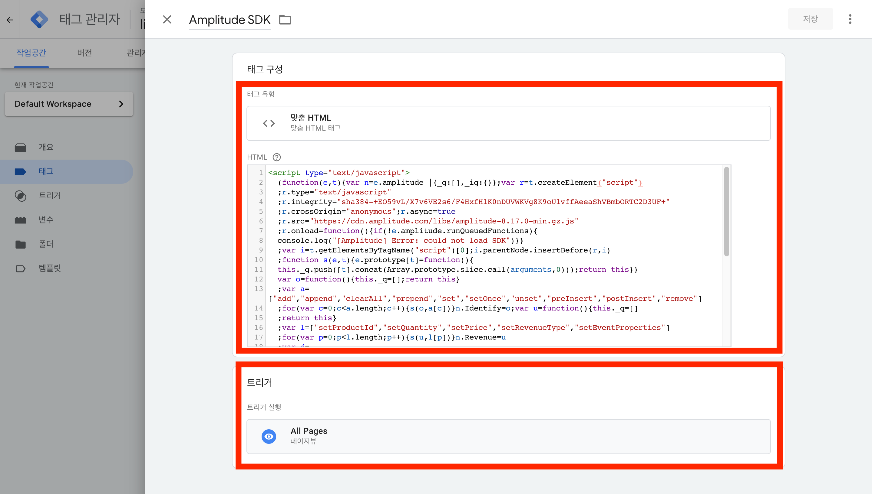 다만, 태그 유형으로 앰플리튜드가 따로 있는 게 아니라 '맞춤 HTML' 을 선택하는 게 기본이라고 생각하면 된다.