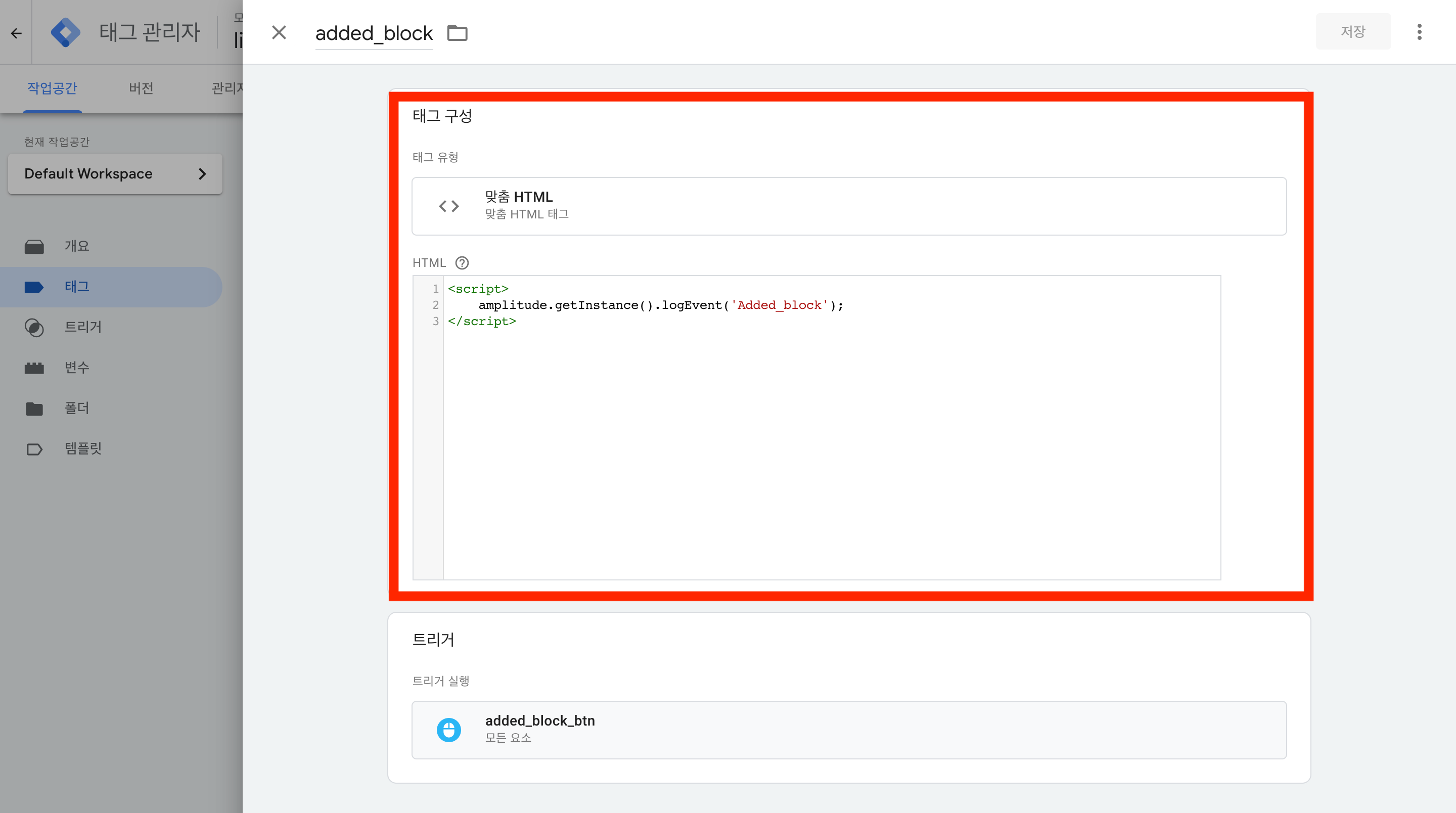 - 태그 유형: 맞춤 HTML