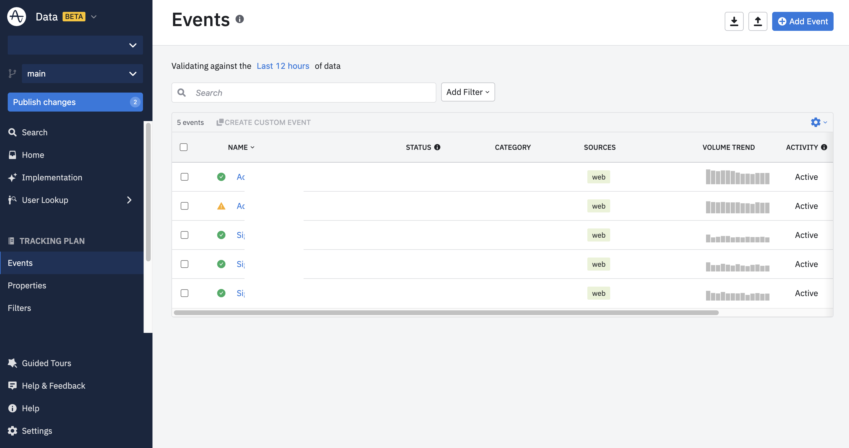 여기까지 만들고 컨테이너를 제출해도 설치 자체는 끝난다. 하지만 이렇게 했을 때 우리가 확인할 수 있는 데이터는 여전히 없다. 설치만 했을 뿐 이 환경을 통해 서비스에서 앰플리튜드로 보내줄 이벤트는 정의하지 않았기 때문이다. 그러니 최소 1개의 이벤트를 추가한 후, 한 번에 제출하는 것이 의미 있는 버전 기록이 될 듯하다.